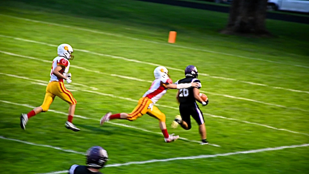 Thorbahn scored two touchdowns, one on a reception and one on a running play, and senior Jack Savard had two sacks and recovered a fumble for a safety on defense. Junior quarterback Cooper Sanville had a touchdown pass and a 60-yard touchdown run.