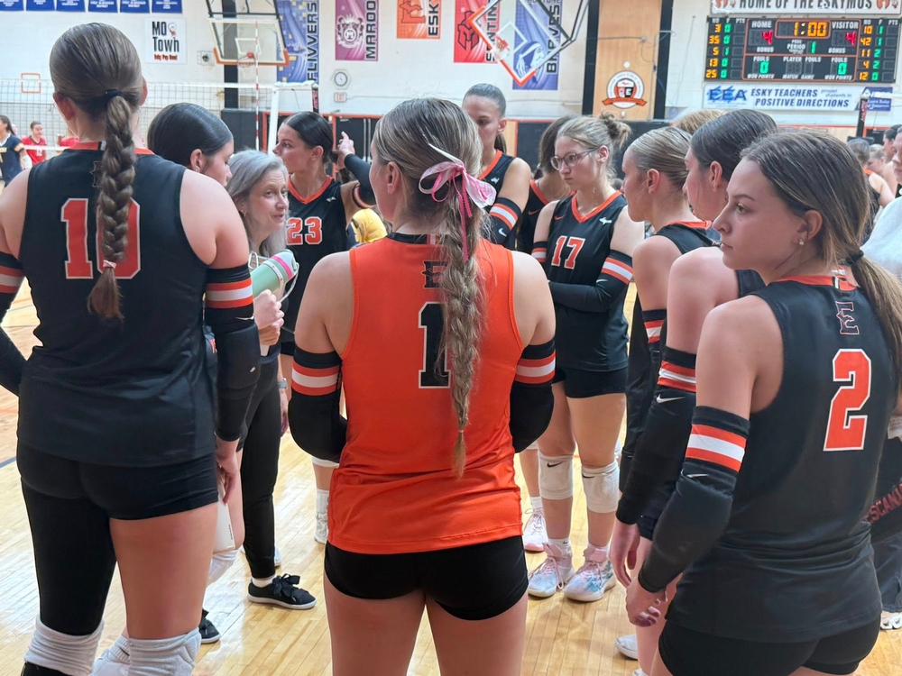 Escanaba, with barely a .500 record for the season, had a strong day on its home court behind the hitting of Ava Stalboerger. The Eskymos shook off a rough 2-0 loss to Westwood in pool play to beat Cheboygan and the top spot in the pool. The Eskymos then faced Ishpeming, led by Baylor University recruit Mya Hemmer in the semifinal. The Esklymos won that match fairly easily, 25-16 and 25-19, while the Trojans cruised by Cheboygan, 25-19 and 25-13.