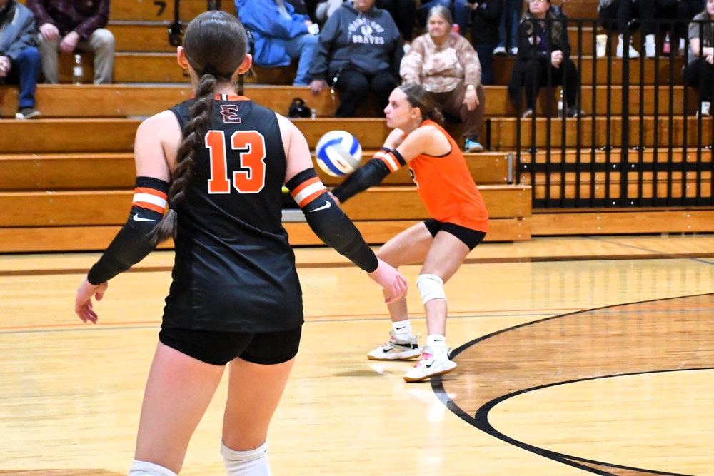 Escanaba was in control from nearly start to finish, but in the third set, with Escanaba ahead, 16-6, Eskymo Coach Bev Ziebell chose to bring in many of her bench players.