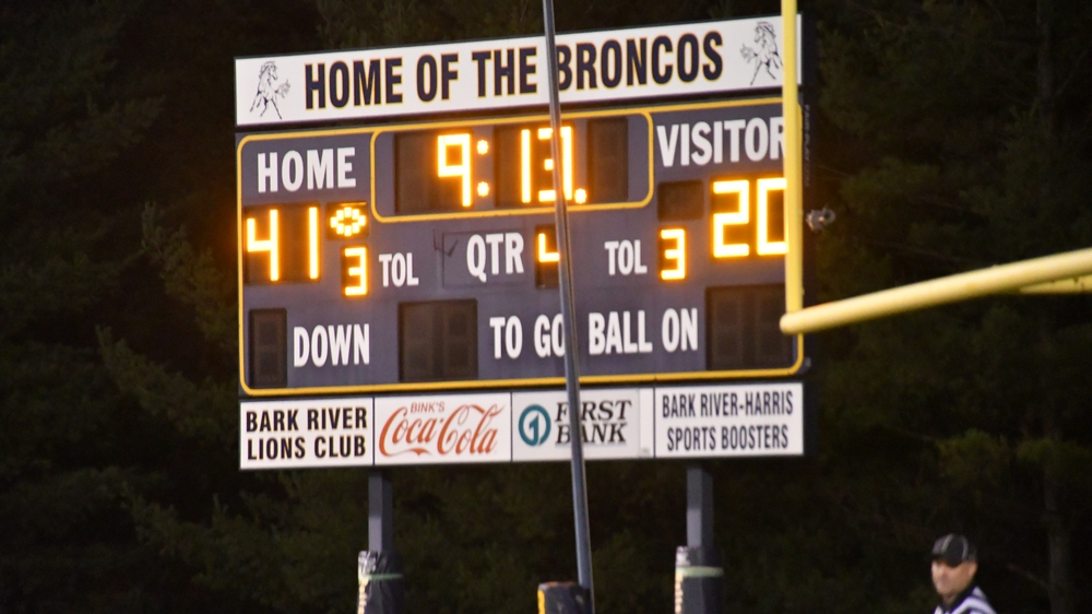 BARK RIVER---The Bark River-Harris Broncos raced to a 24-0 lead Friday night, and held off the Iron Mountain Mountaineers, 41-20, to send the Broncos into the regional final next week below the Bridge. Gionni McDonough scored on two long touchdown runs, including a 91-yarder, and the Bronco defense intercepted three passes in the first half.