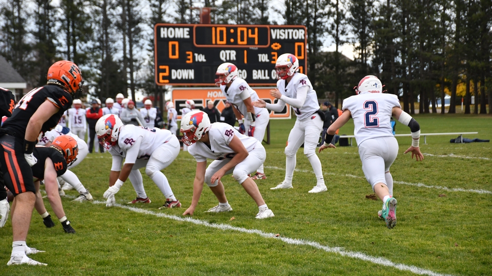 Escanaba dug an early hole as Big Rapids (10-1) scored touchdowns on its first two possessions. The first was on a short run by quarterback Cole Haist, then after an Eskymo punt, Haist tossed a well-thrown pass to Owen Craven for a 28-yard score along the Eskymo sideline, sending the vocal BR crowd into hysterics.