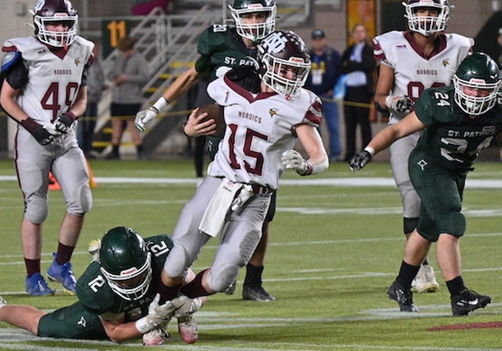 The Nordics went for it on fourth-and-1 at their own 29 on the ensuing possession, but they were stuffed for no gain, giving St. Patrick the ball not far from the red zone.