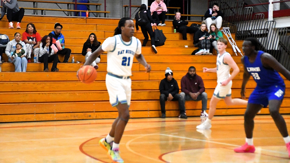 Indeed, Lake Region, an NJCAA-Division One team from Devils Lake, N.D., (Bay is NJCAA-Division Two), had won seven games in a row. The Royals battled back several times from deficits as large as 19 points before the Norse finally secured the victory. All eleven of their players scored, with Quyvant Douglas leading the way with 12 points and five rebounds.