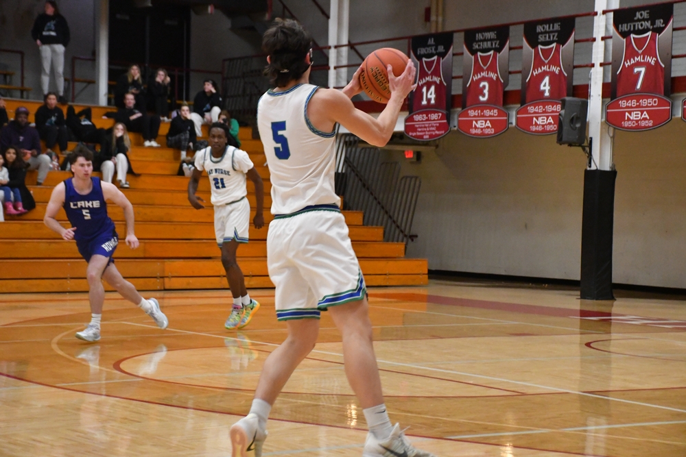 Munising's Trevor Nolan came off the bench, again, to spark the Norse. He swished five triples through the hoop, all from well beyond the three-point line, continuing an early-season trend that has seen the smallest guy on the court make a big inpact in the game.