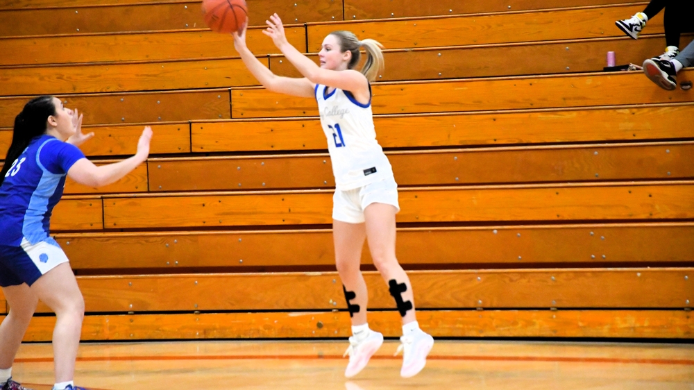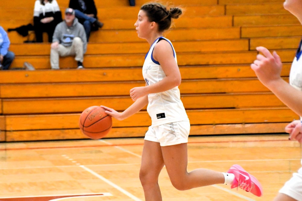 Indeed, it was a nip-n-tuck battle throughout, with the Royals grabbing a 26-22 lead after the first quarter and holding a slim 41-38 lead at halftime. Bay College dominated the third quarter, paced by Bark River-Harris graduate Lauren Zawada, who scored 16 of her team's 29 points in that third quarter. Zawada had three “and-one” baskets during that ten minutes, and helped her team build its biggest lead at 59-50 late in the third quarter.