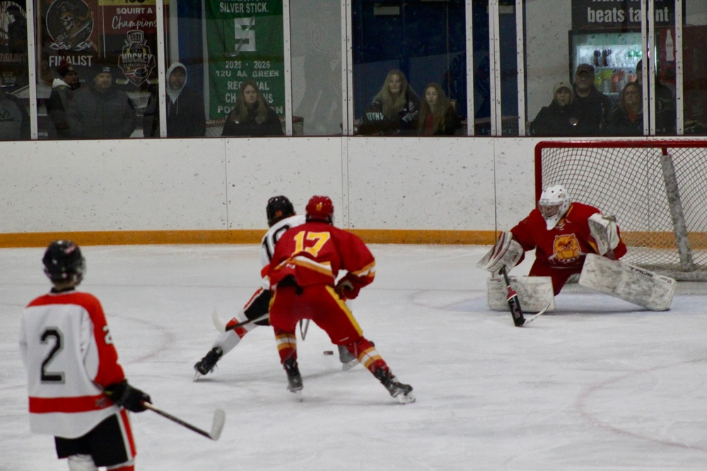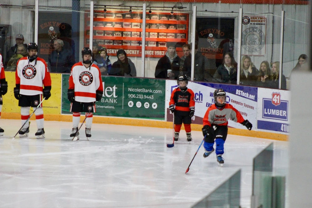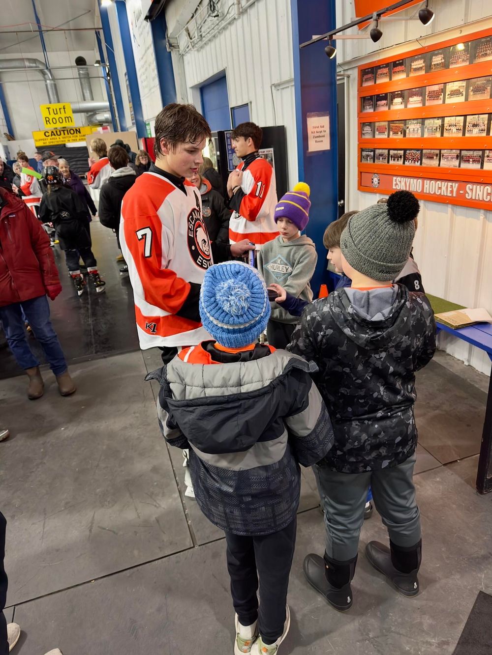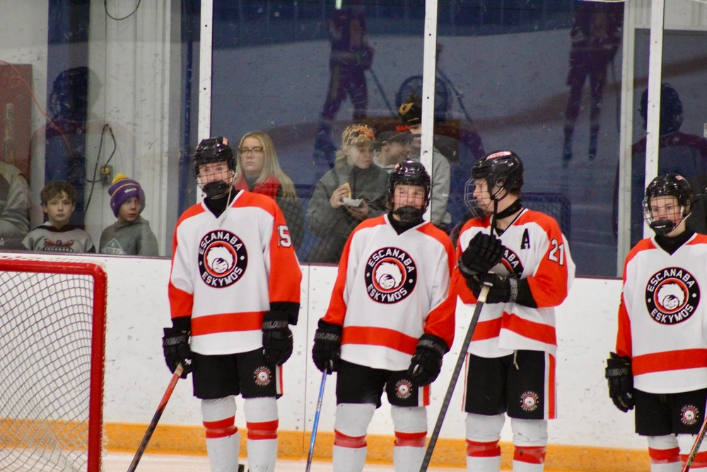 Click the thumbnails to see photos and videos taken by Lizzie Taylor. Click the AUDIO buttons to hear player spotlight interviews with Keagan Braun and Cully Hayes. And hear post-game comments from Eskymo Coach Andy Johnson, third star Nolan Bink, first star Ben Sands, and Hancock's Brady Axford (second star).