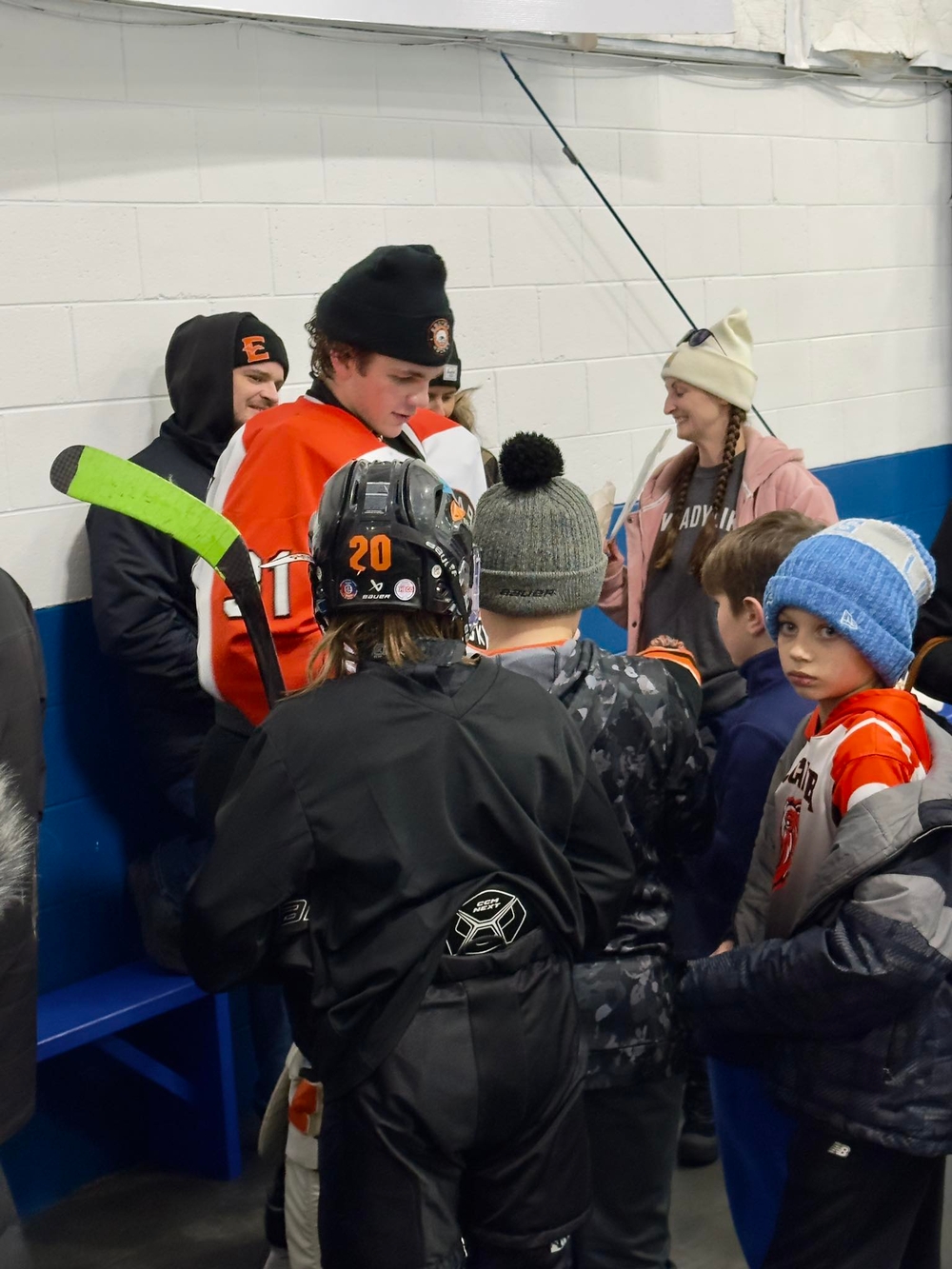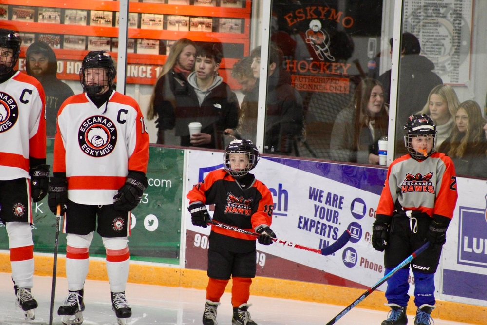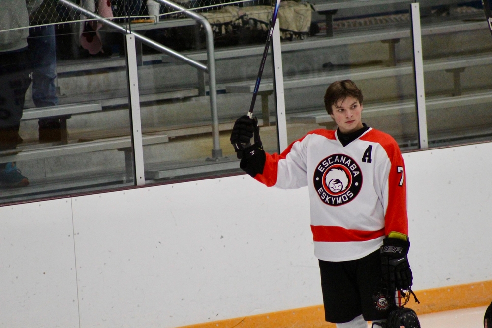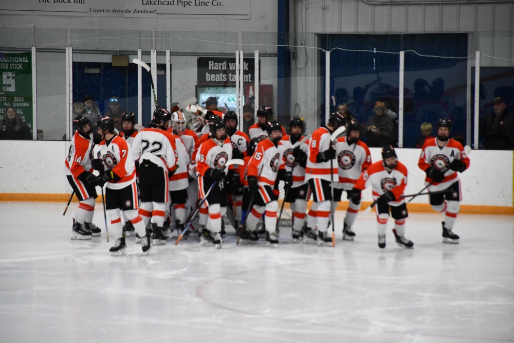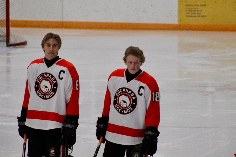 Click the thumbnails to see photos and videos taken by Lizzie Taylor. Click the AUDIO buttons to hear player spotlight interviews with Keagan Braun and Cully Hayes. And hear post-game comments from Eskymo Coach Andy Johnson, third star Nolan Bink, first star Ben Sands, and Hancock's Brady Axford (second star).