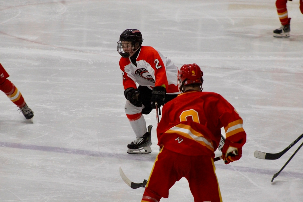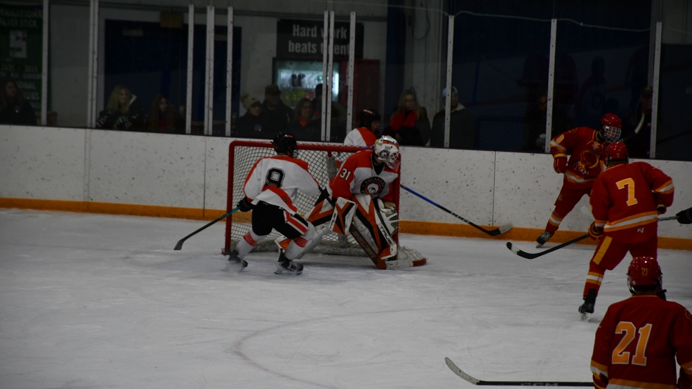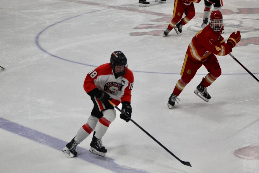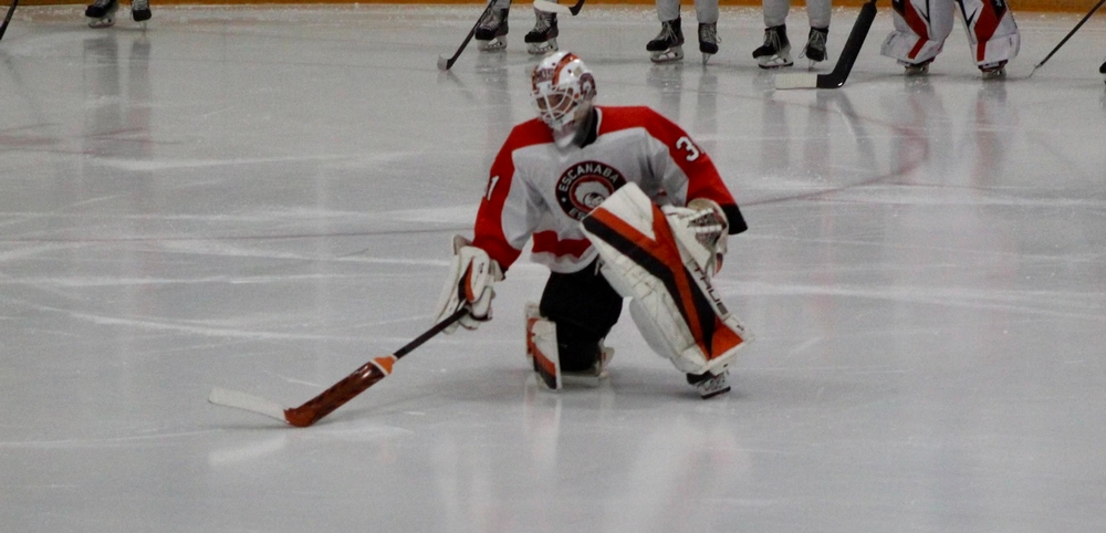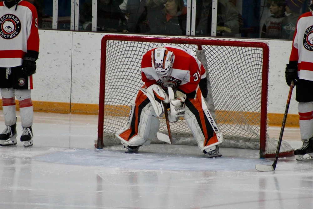 WELLS---The Escanaba High School hockey team raced to a big 6-2 lead after two periods, and then had to hang on for dear life down the stretch as the Hancock Bulldogs put on a furious rally before the Eskymos escaped with a 6-5 win Tuesday night at the Wells Sports Complex.
