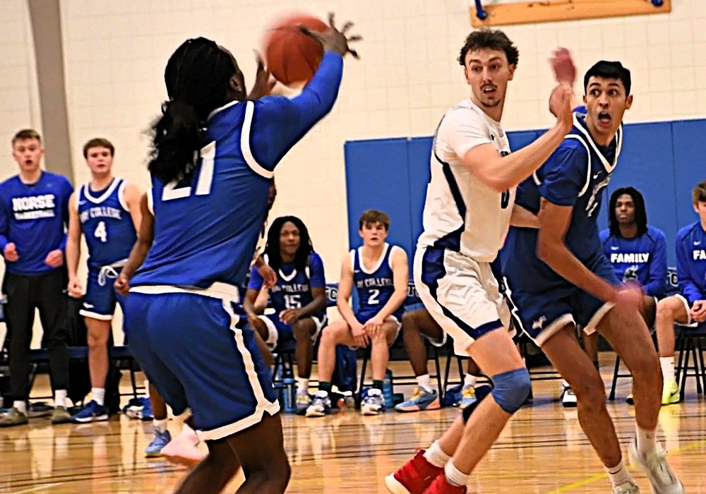 INVER GROVE HEIGHTS, Minn.---Basketball is a game of runs. That is a coach's cliché, but sometimes, it's true. And on Saturday in Minnesota, the Bay College Norse and Dakota County Technical College Blue Knights proved that in a wild back-and-forth game.