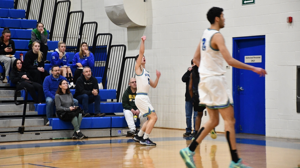 The Norse came out firing from behind the thgree-point line, with William Kelley making three of them, Emerson Droubie knocking down two, and Trevor Nolan swishing hjis usual 30-footer. Adam Page also buried a triple, Savion Johnson threw down an powerful two-handed slam, and Ziad Abouali scored three times in the paint.
