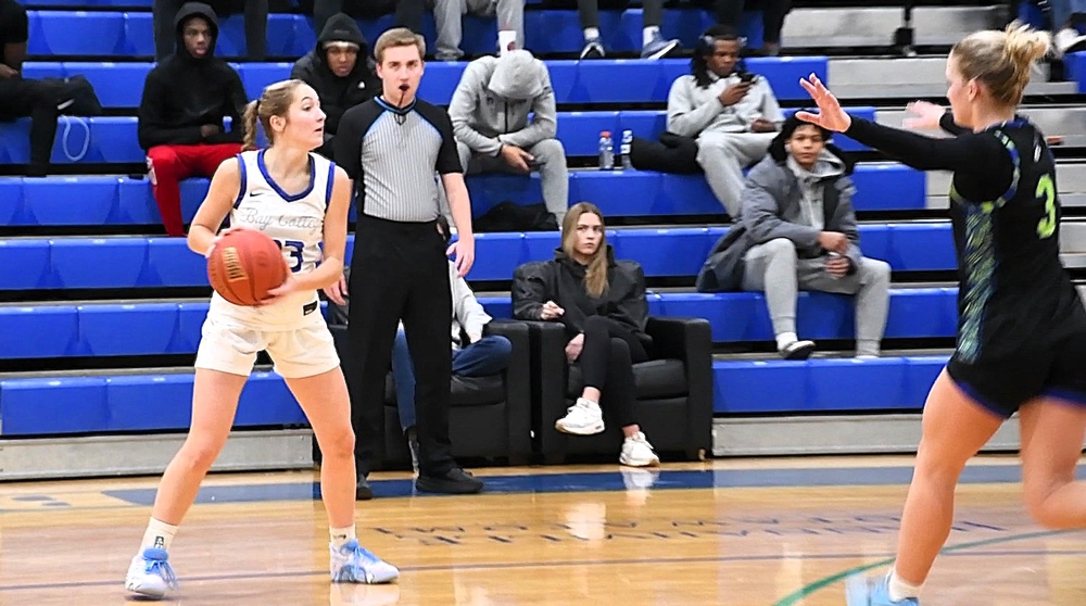 In the first quarter, Makenna Hendrickson knocked down a couple of triples, and six different players scored in the first quarter as Bay took a 21-10 lead after the first ten minutes. In the second quarter, Nina Bower came off the bench to score ten points, including two three's, and the Norse led at halftime, 37-23.