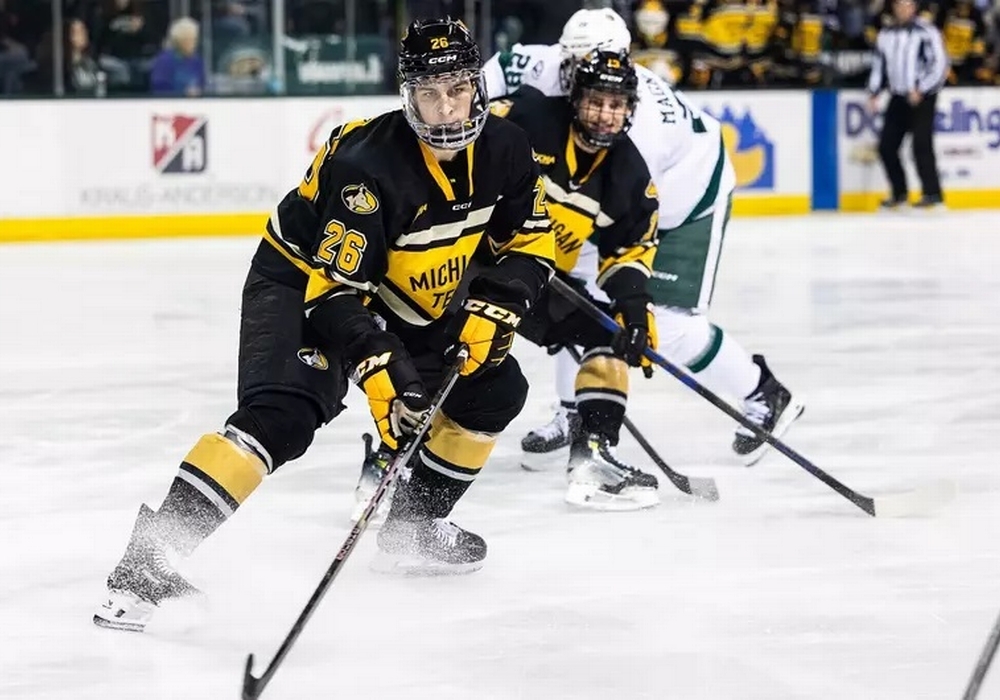 Tech responded when Brayden Boehm buried his sixth of the season on a 2-on-1 with Jack Anderson at 7:35 of the second. Reid Daavettila and Michael Cicek were again credited with the assists.