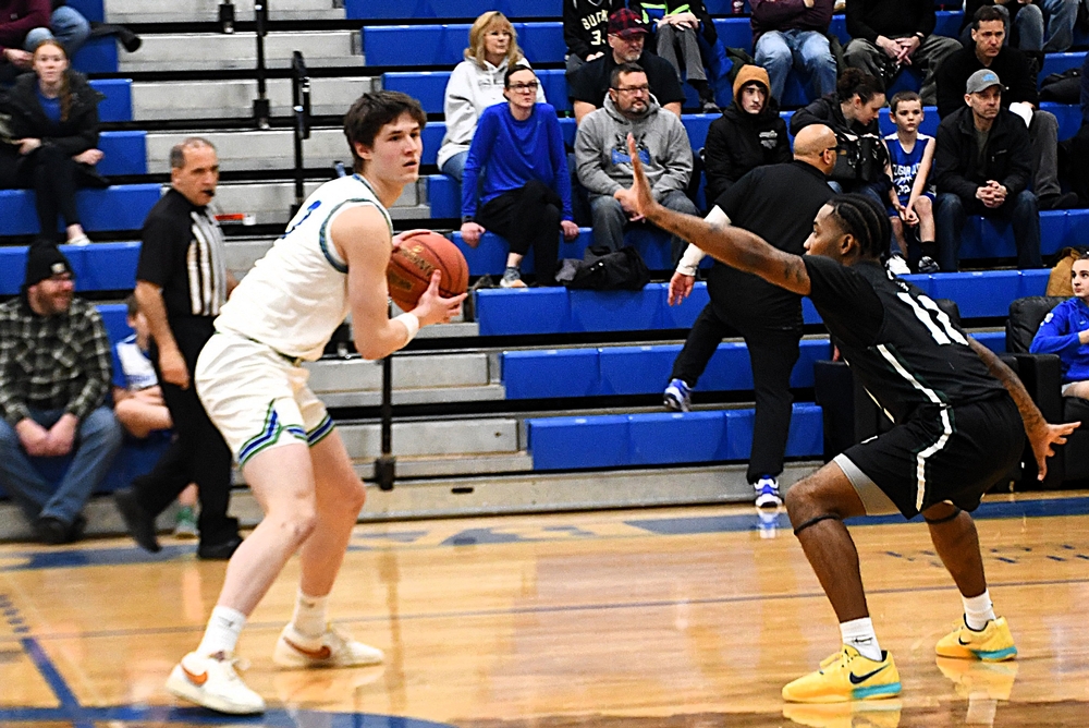 The Norse jumped to a 15-5 lead out of the gate on Droubie's first triple, along with inside baskets by Savion Johnson and Taveon Vann. Bay held the lead throughout the entire first half, with a Savion hoop making it a 32-20 game for Bay's biggest lead.
