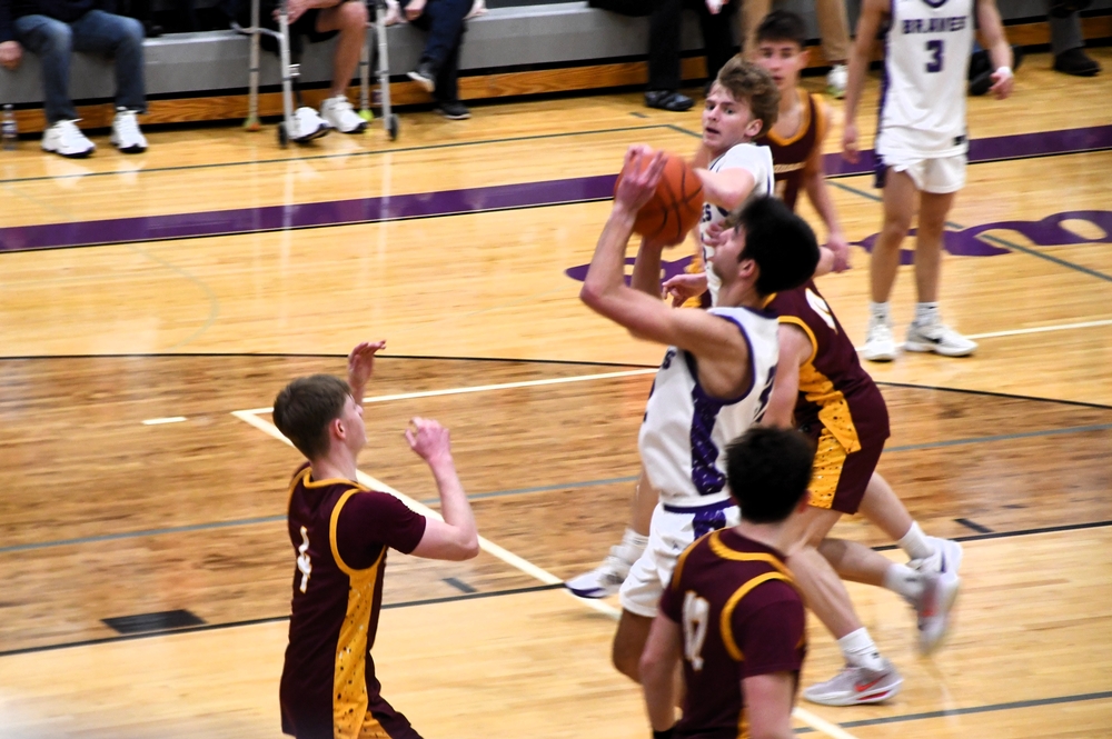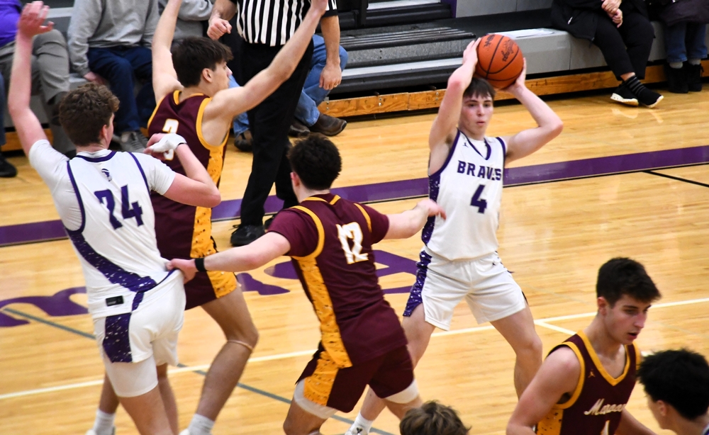 The game went down to the wire before the second-ranked Maroons escaped with a 65-62 win to improve to 6-1 in GNC play. The game wasn't over until Jacob Schultz made a pair of free throws with seven seconds left, and the Maroons used up fouls-to-give to prevent the Braves from getting a decent look at a game-tying triple in the final second.