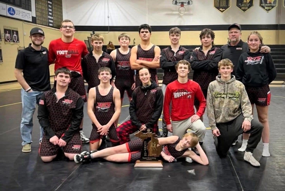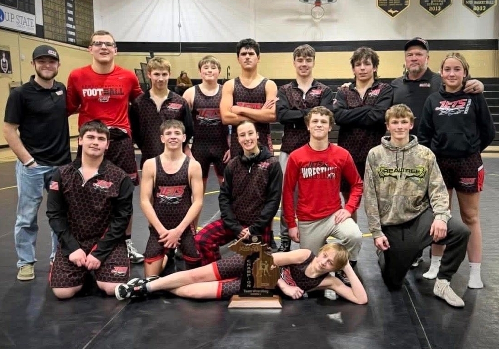 It's the first time in the short three-year history of Jets westling that they've won a regional championship. One other championship came as part fo a co-op team with Bark River-Harris. This NCA Jets team will head down to Kalamazoo for the state finals at the end of the month. In the meantime, the boys will comepete in the individual regionals this Saturday in Charlevoix.