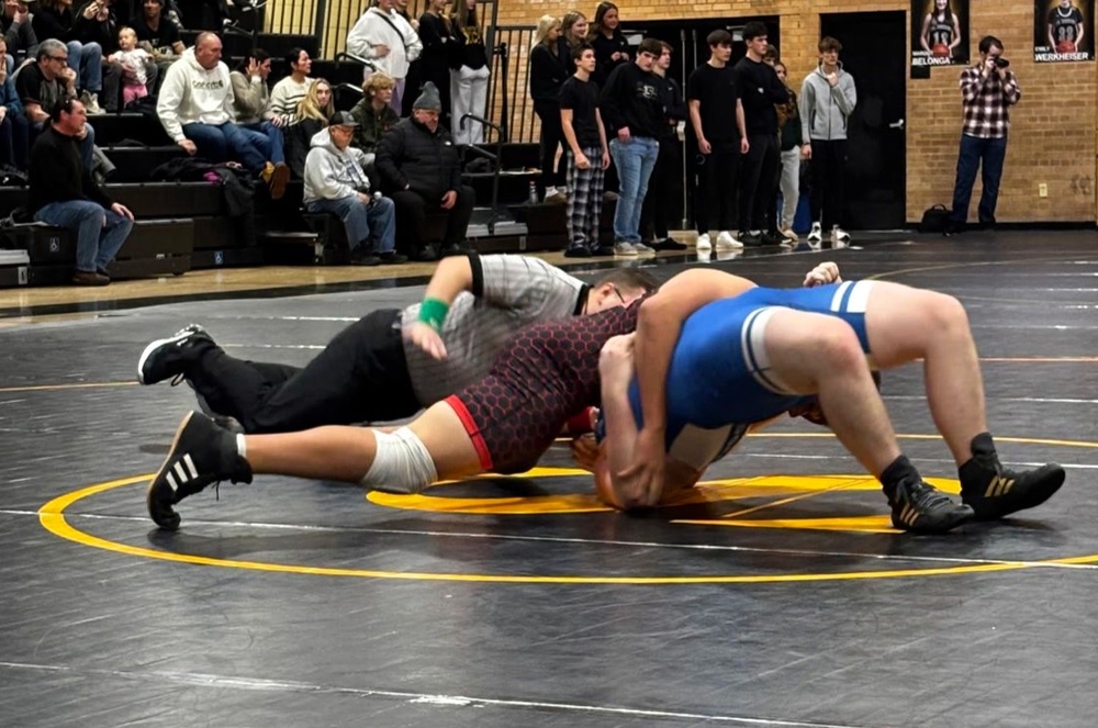 Freshman Nick Bertrand wrestled up to 215 pounds against Indian River and earned a pin against Trentin Hickey, and then against St. Ignace, Bertrand was at his normal 190-pound weight and battled to a 8-7 loss to St. Ignace's Brodie Leipold. Coach Raab said that was important, as Bertrand gave away only three points as opposed to six if he had been pinned.