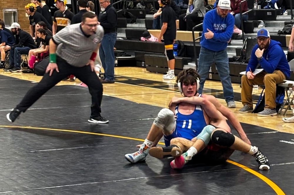 Myles Nehring got a pin at 215 pounds in the semifinal, and got a pin at heavyweight in the final.
