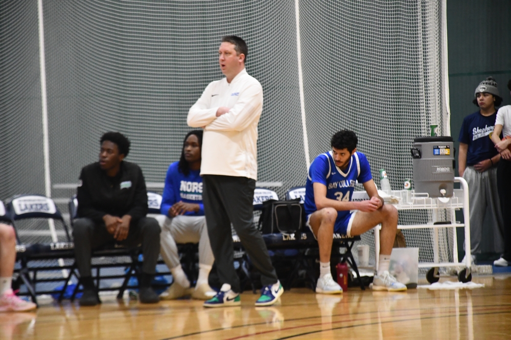 The two teams traded baskets for most of the first half, with the Lakers nailing nine triples, often it looked like Bay might build a semi-comfortable lead. Kyle Hustrulid had two straight baskets to help the Norse hold 26-18 and 28-23 leads, but Amonti Green brought the house down with a driving one-handed jam that made it 30-28.