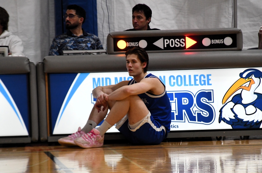 Bay, however, stabilized, with Kelley scoring five more points, Emerson Droubie knocking down two triples, and Frye scoring an “and-one” basket to rebuild a ten-point lead at 44-34. Mid Michigan finished the half strong, however, with Christian Zielinski scoring a triple and a long two, and Bryce White adding a pair of triples off the bench.