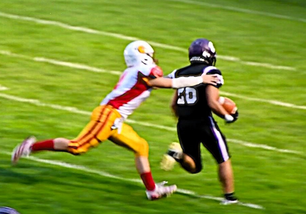 Thorbahn scored two touchdowns, one on a reception and one on a running play, and senior Jack Savard had two sacks and recovered a fumble for a safety on defense. Junior quarterback Cooper Sanville had a touchdown pass and a 60-yard touchdown run.