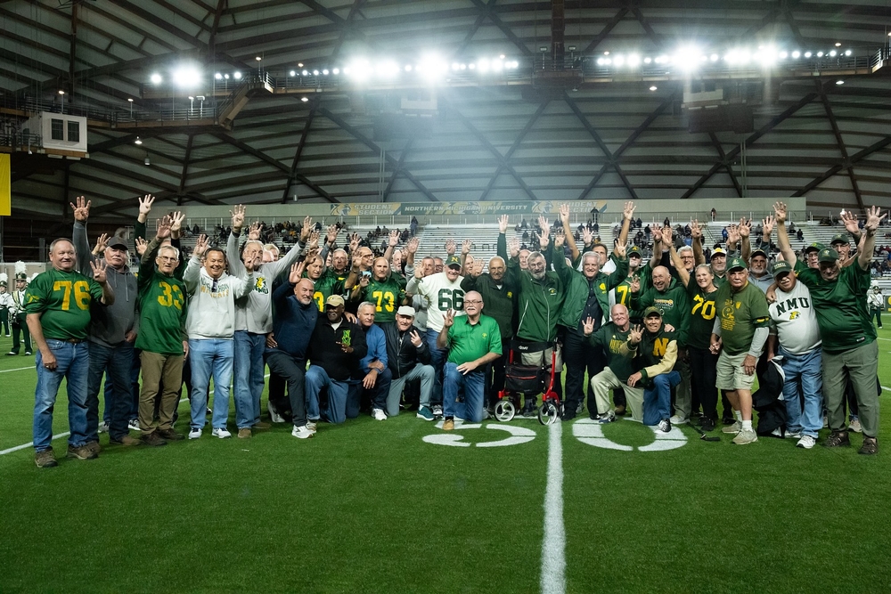 MARQUETTE---A week full of nostalgia and celebration wrapped up Saturday night at Northern Michigan University as the 1975 national championship football team was honored. The highlight was the retirement of Steve Mariucci's jersey, the Iron Mountain native who was the quarterback of that team and went on to play and coach in the NFL.