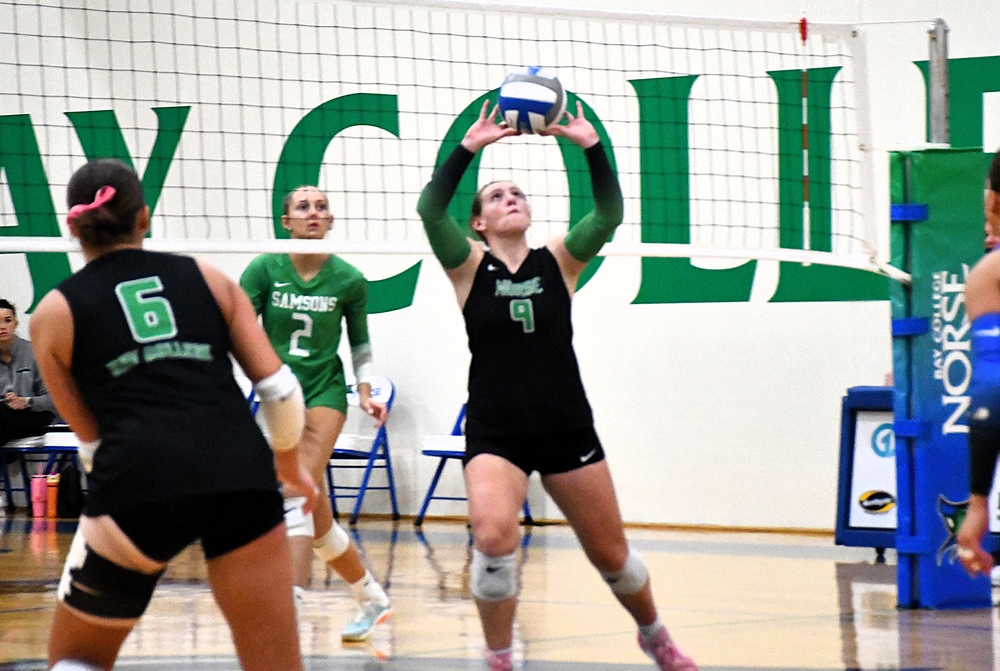 Bay was in control most of the way, and was closing in on a sweep with a 23-17 lead in the third set. Gogebic rallied, though, to take that third set, and the Samsons had a 7-3 lead early in the fourth set before the Norse regained control.