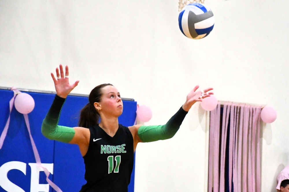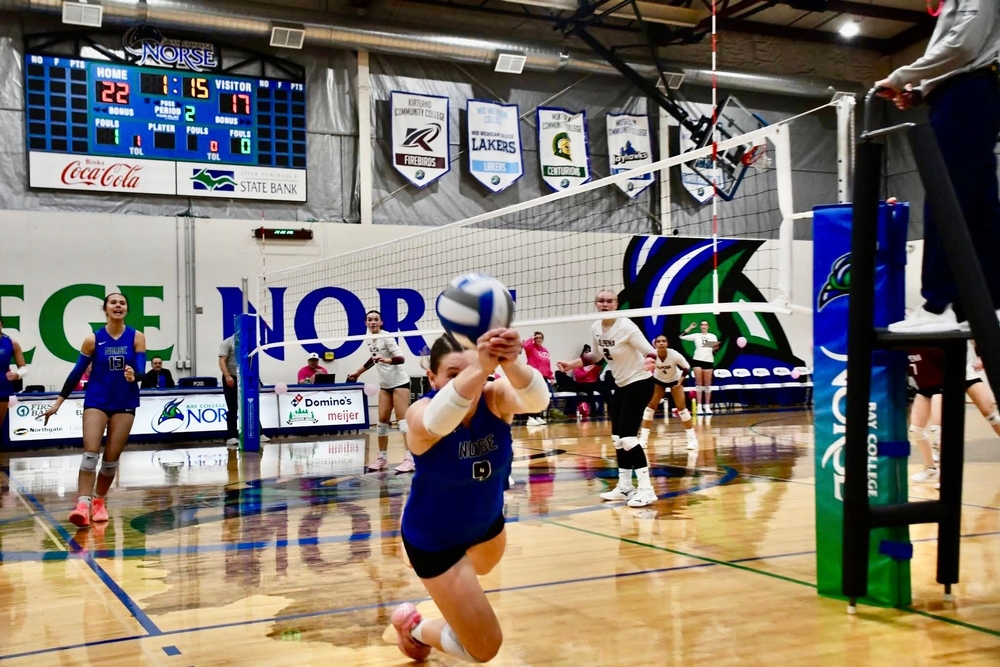ESCANABA---The Bay College Norse volleyball team closed the regular season in Escanaba Wednesday night with the annual Pink Out Night for breast cancer awareness.