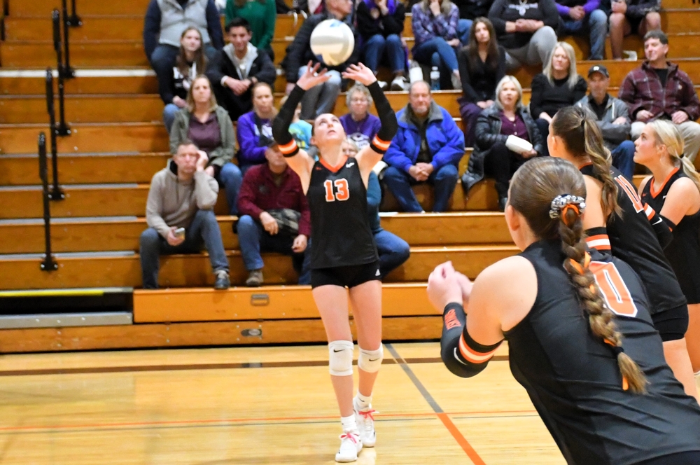 ESCANABA---The Escanaba High School volleyball team opened the MHSAA Division Two district tournament Monday night with a 3-0 win over the Gladstone Braves.