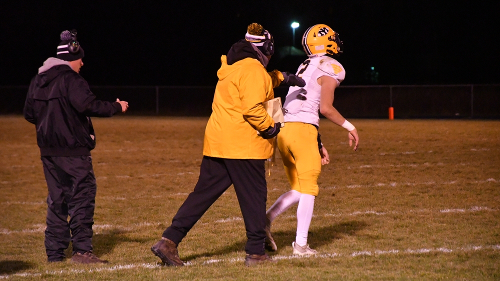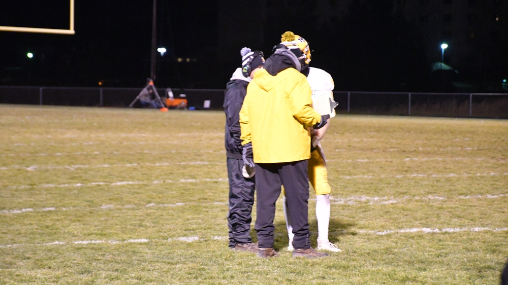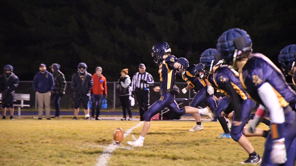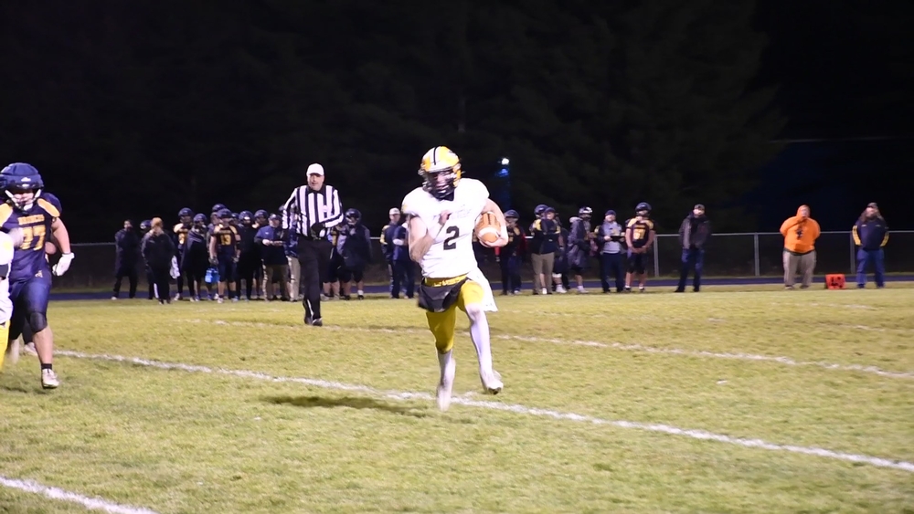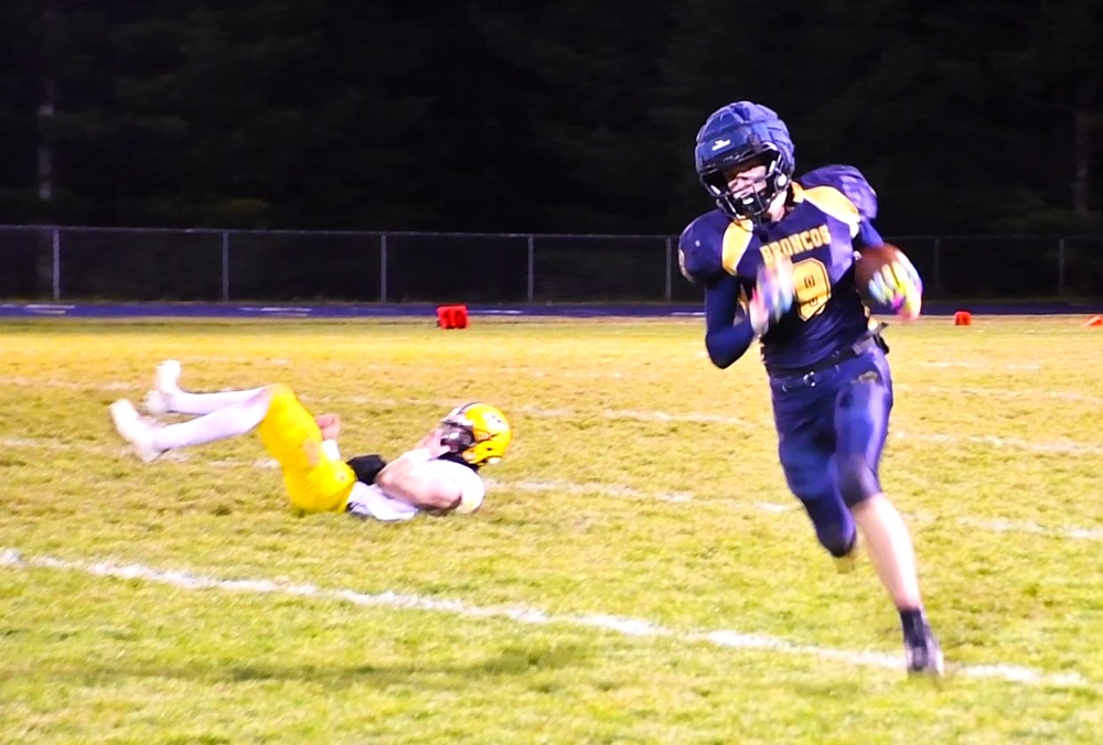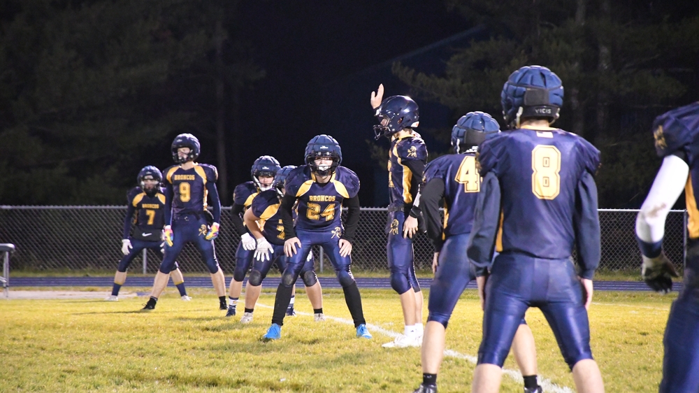 Andy Johnson added two touchdown runs, Ethan Oswald scored on a 20-yard run, and Dane Schmitt kicked a 34-yard field goal in the victory. The Broncos also intercepted three passes on defense, all of them in the first half, by Brayden Derouin, Ben Knauf, and Oswald..