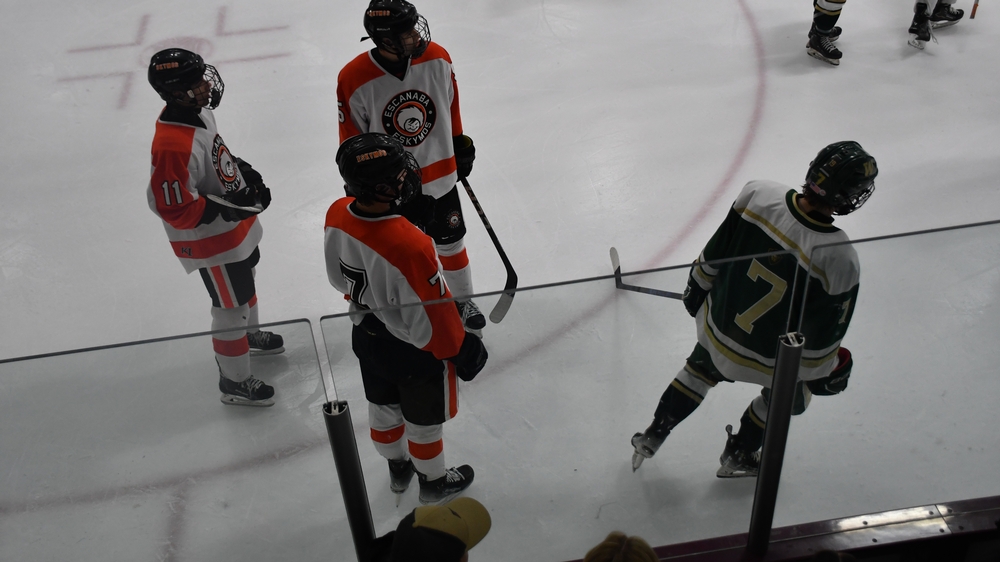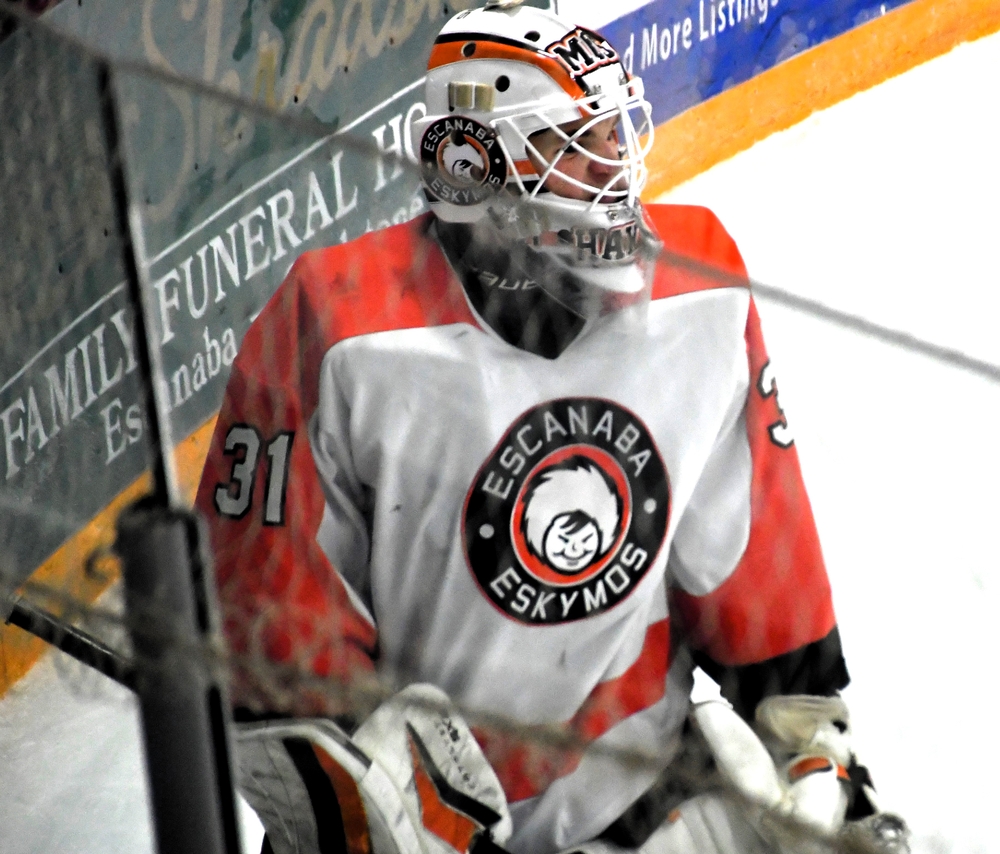Escanaba was badly outplayed in the first period, but escaped with a scoreless tie thanks to 15 saves from senior goaltender Cully Hayes. It was better in the second period, but the Eskymos still had multiple passes hop off sticks, guys bumping into each other, and fanned shot attempts.