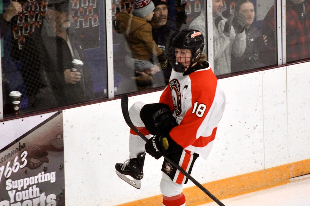 On the down side, Escanaba's Hunter Allen was whistled for three penalties and Owen LaBonte went to the box twice. Senior Cully Hayes stopped all 25 shots for the shutout in the Eskymo net, while Dow goaltender Aesa made 26 saves on 32 shots.