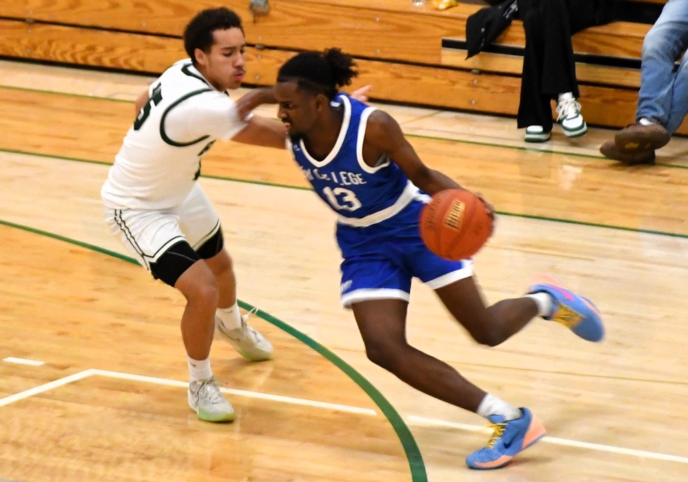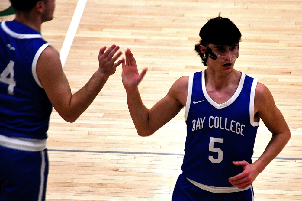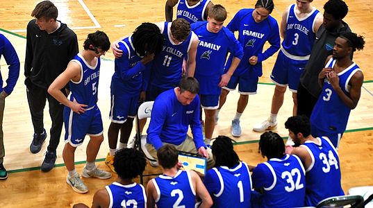 IRONWOOD---The Bay College Norse men's basketball team played lockdown defense on the Upper Peninsula rival Gogebic Community College Samsons Tuesday night, holding the Samsons to just 47 points on 28.8% shooting, on the way to a 77-46 victory in Ironwood.