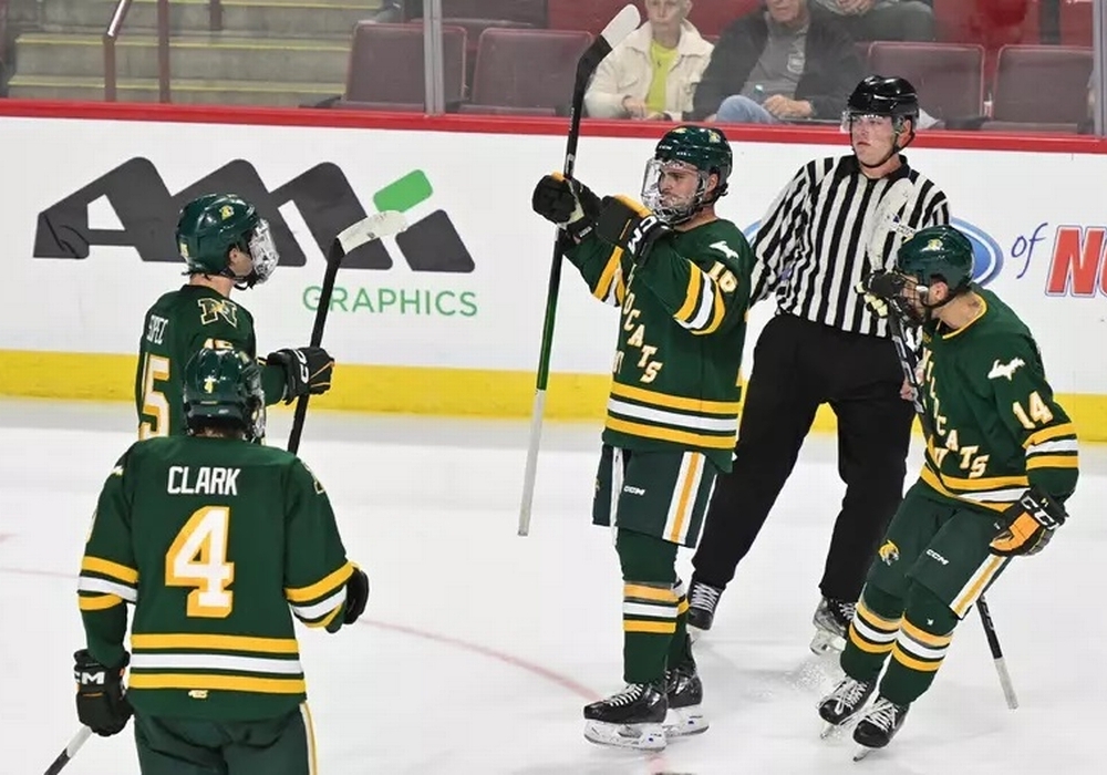 This time it was the Falcons who came out hot, outshooting the 'Cats 7-0 in the first eight minutes of play. But the Wildcats flipped a switch and would outshoot the Falcons 11-3 in the final half of the period, including a confident power play that fired five shots on the goaltender Jacob Steinman. After nearly 11 minutes of all NMU pressure, the Falcons got a fortunate bounce, taking the lead with under a minute to go in the period off a deflection from Jeremie Minville.