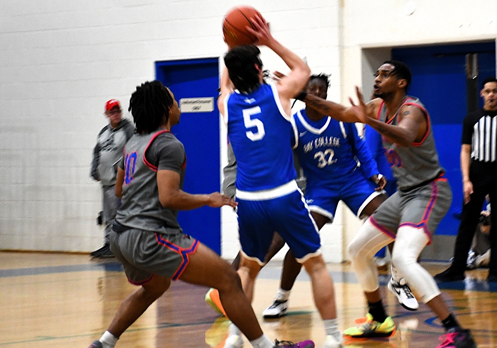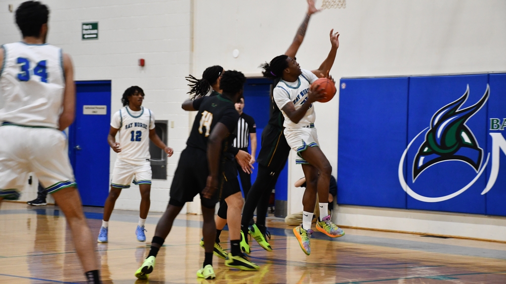 In the Friday win, the first half saw the Vikings take small leads until about midway through the half. That's when Trevor Nolan got hot, knocking down three triples, and Taveon Vann threw down eleven points, including a slam dunk that got the crowd onto its feet. Bay College led at halftime, 45-38.
