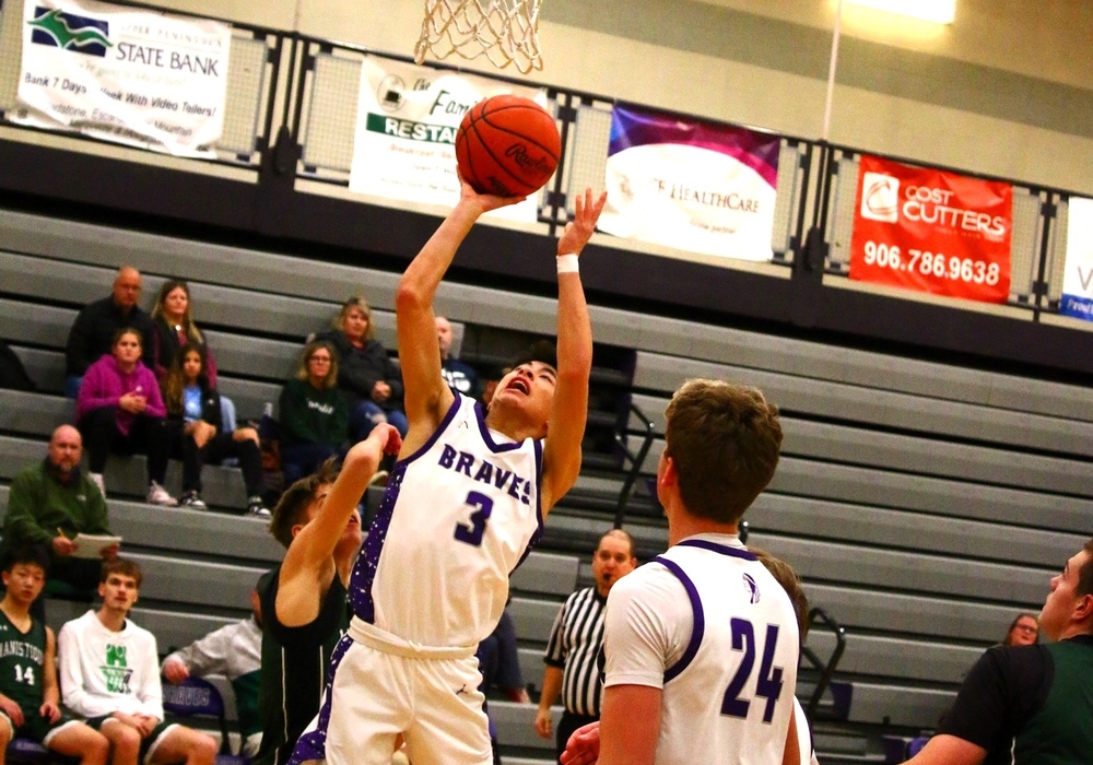 ESCANABA---The Gladstone High School boys basketball team used a huge second quarter to open up a 20-point halftime lead, and the Braves never looked back, beating the Escanaba Eskymos, 67-48, in a rivalry battle at the Escanaba High School Gym.