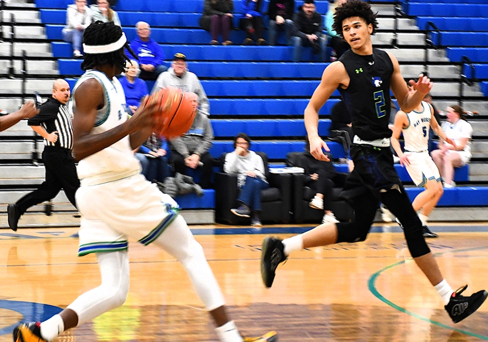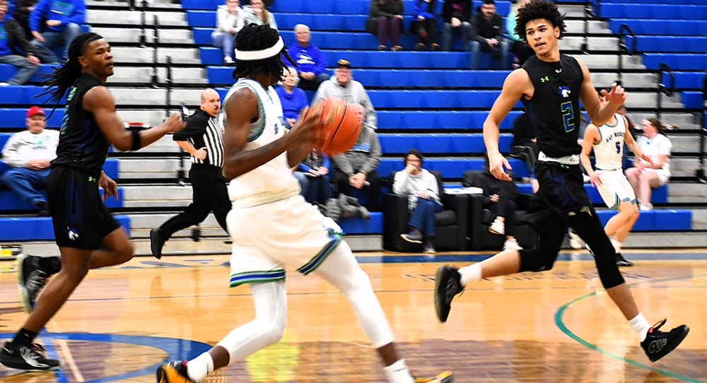 The Norse came out firing from behind the thgree-point line, with William Kelley making three of them, Emerson Droubie knocking down two, and Trevor Nolan swishing hjis usual 30-footer. Adam Page also buried a triple, Savion Johnson threw down an powerful two-handed slam, and Ziad Abouali scored three times in the paint.
