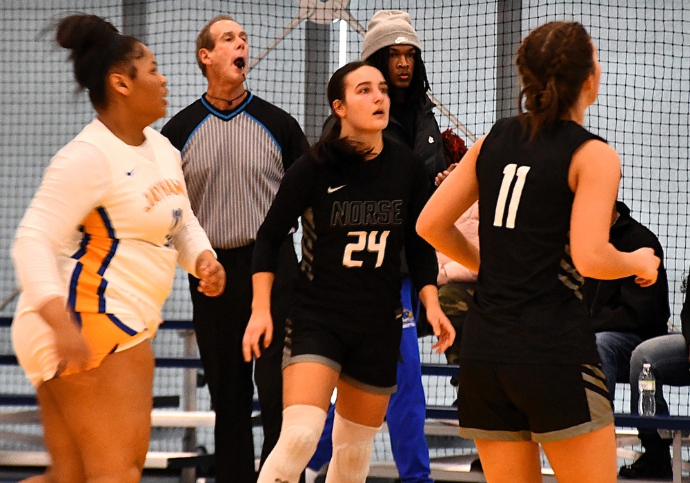 “We were kind of down at first, but I think that was because of a lack of energy, and once we got moving,” Norse point guard Makenna Hendrickson said. “Coach kind of got on us. It was tough with the refs, because at first, like, every little thing was getting called, and then nothing was getting called at the end. It's frustrating, but we just kind of played through it. When it's constantly changing, then you don't know if you can play rough or not. It was weird (atmosphere) vibes.”