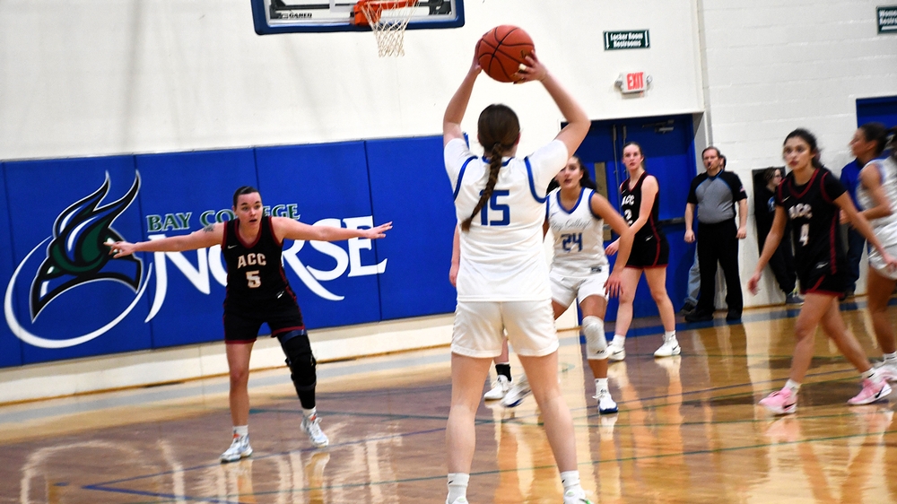 ESCANABA---The Bay College Norse women's basketball team led from wire-to-wire and beat the Alpena Community College Lumberjacks, 119-40, in an MCCAA North Conference game Wednesday night in Escanaba.