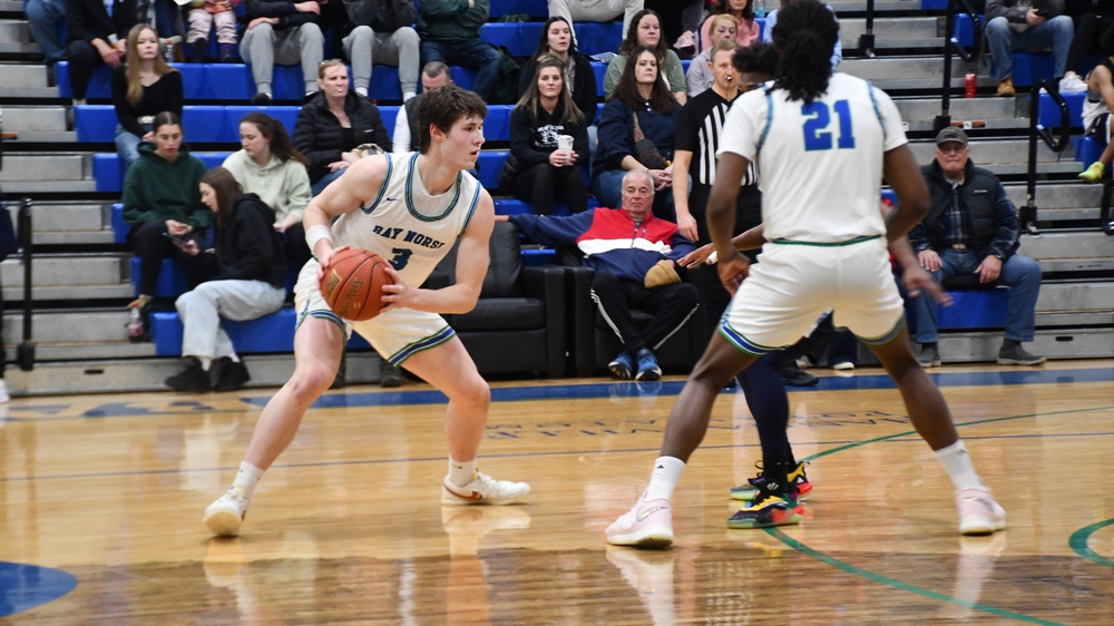 Bay is now 4-3 in conference play at the half point of the conference season, The top five teams in the eight-team conference make the playoffs, and right now, the Norse are in fourth place. The last home playoff spot is held by Kirtland by a half-game, and the Firebirds have the tiebreaker with Bay. Kirtland and Mid Michigan have a make-up game scheduled for Monday night in Mt. Pleasant.