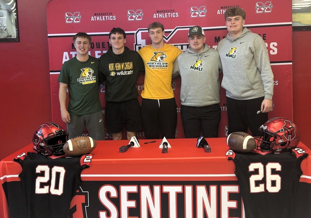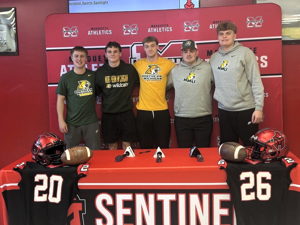 National Signing Day on Wednesday saw five Marquette Senior High School athletes put pen to paper and sign with the Northern Michigan Wildcats football team.