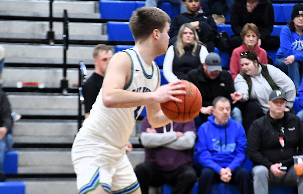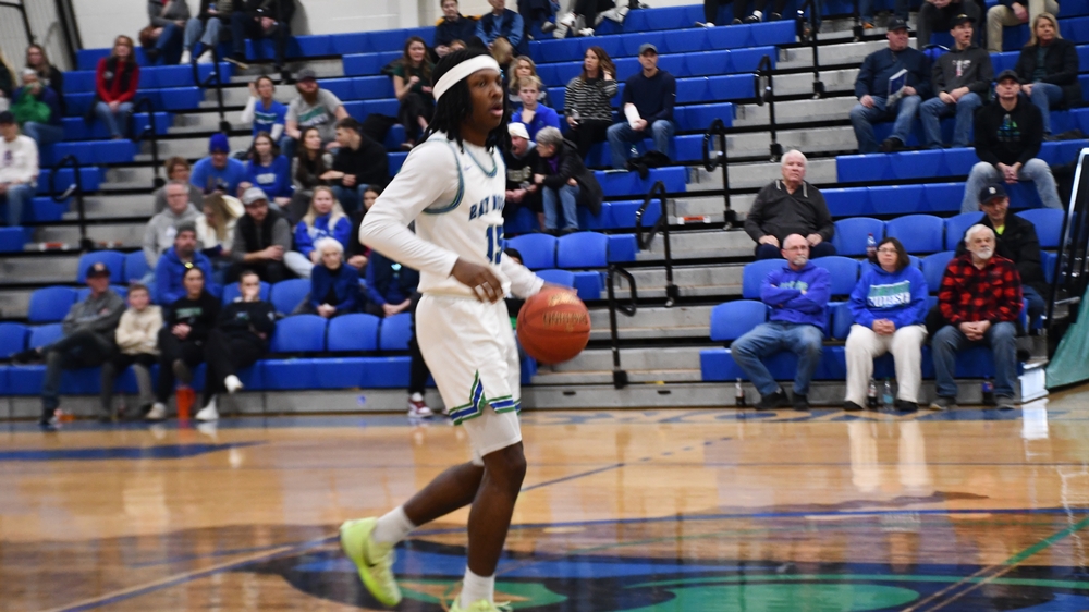 Emerson Droubie drained six triples and scored a game-high 25 points to lead the Norse. He had scored 34 points in a recent home game before struggling during Bay's road win at Alpena last Wednesday. Droubie also had nine rebounds in Saturday's victory.