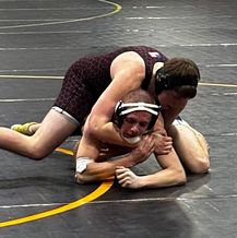 Freshman Nick Bertrand wrestled up to 215 pounds against Indian River and earned a pin against Trentin Hickey, and then against St. Ignace, Bertrand was at his normal 190-pound weight and battled to a 8-7 loss to St. Ignace's Brodie Leipold. Coach Raab said that was important, as Bertrand gave away only three points as opposed to six if he had been pinned.