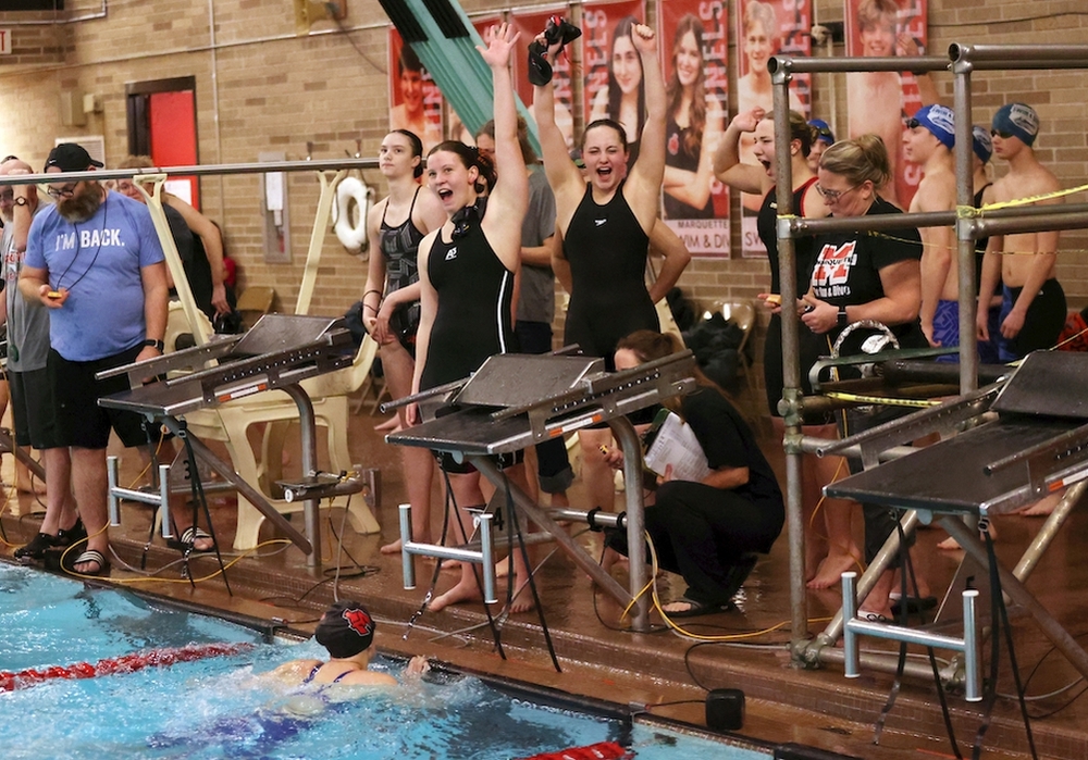 She was determined to keep her mind where it needed to be, something she did from start to finish. She edged last year’s champion, Allison Deuter, by six hundredths of a second in the 50-yard freestyle and later won the 100 butterfly while also helping Marquette to first-place finishes in the 200 and 400 freestyle relays.