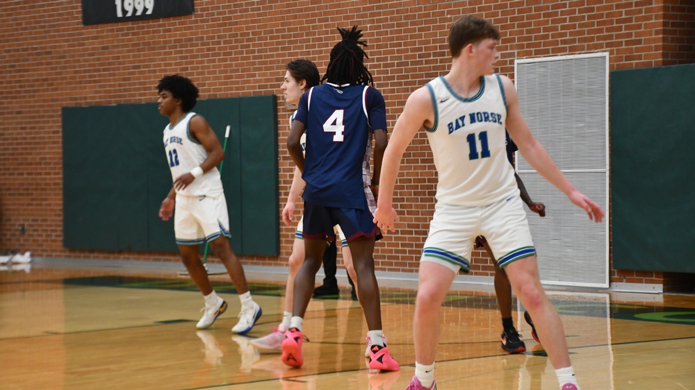 The game was tight all the way, with Kirtland regularly attacking the baseline, and Bay knocking down three-point jumpers. Sophomore William Kelley scored ten early points for the Norse, helping Bay to take a 19-16 lead midway through the first half.