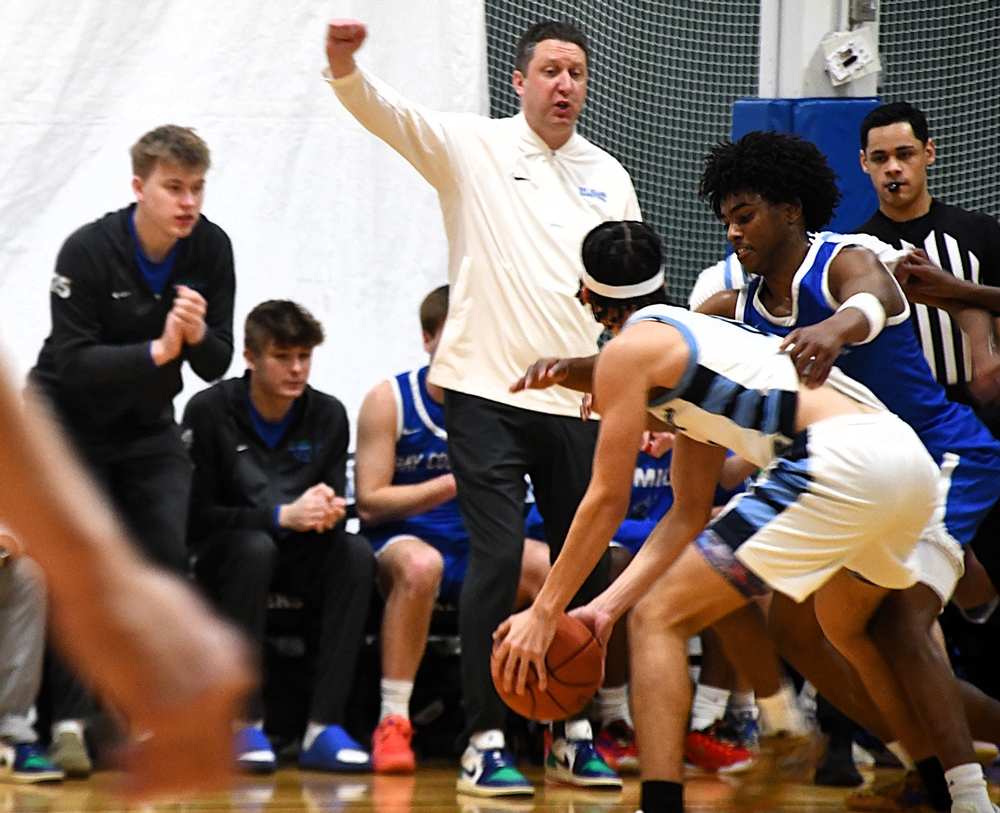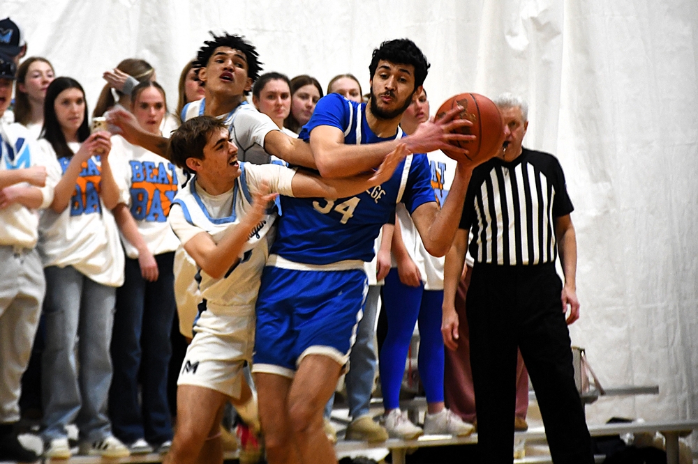 Bay, however, stabilized, with Kelley scoring five more points, Emerson Droubie knocking down two triples, and Frye scoring an “and-one” basket to rebuild a ten-point lead at 44-34. Mid Michigan finished the half strong, however, with Christian Zielinski scoring a triple and a long two, and Bryce White adding a pair of triples off the bench.