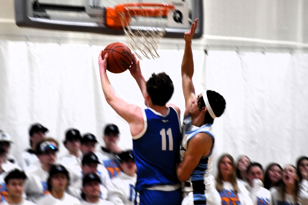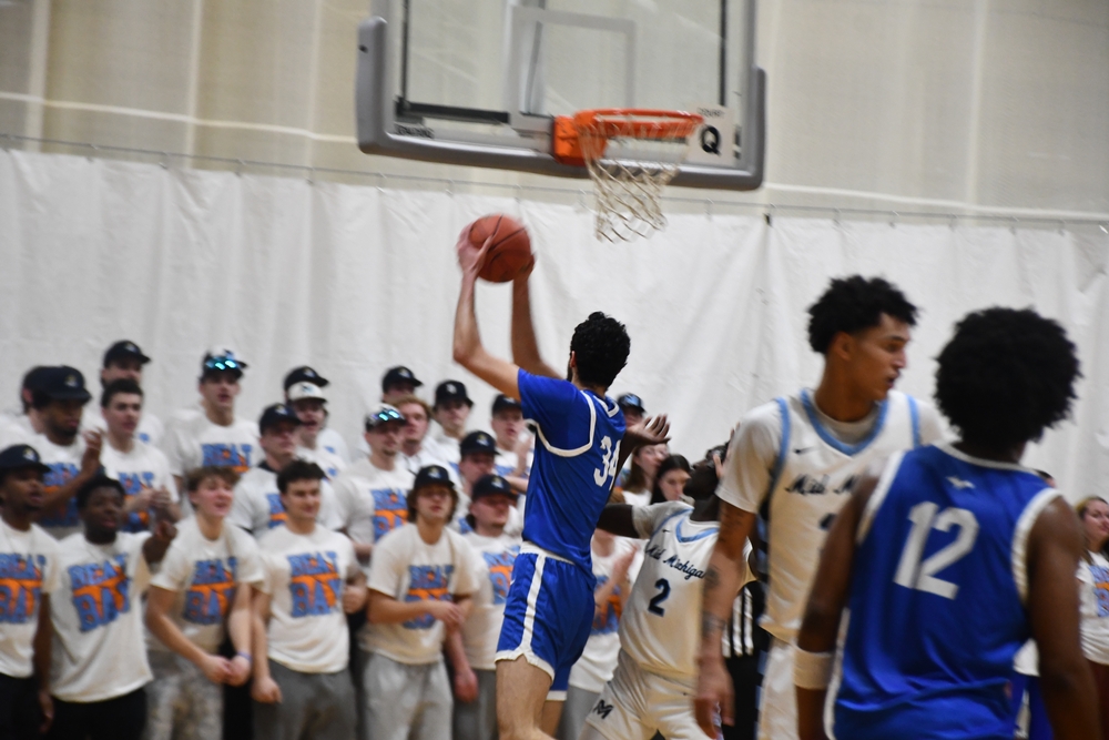 The two teams traded baskets for most of the first half, with the Lakers nailing nine triples, often it looked like Bay might build a semi-comfortable lead. Kyle Hustrulid had two straight baskets to help the Norse hold 26-18 and 28-23 leads, but Amonti Green brought the house down with a driving one-handed jam that made it 30-28.